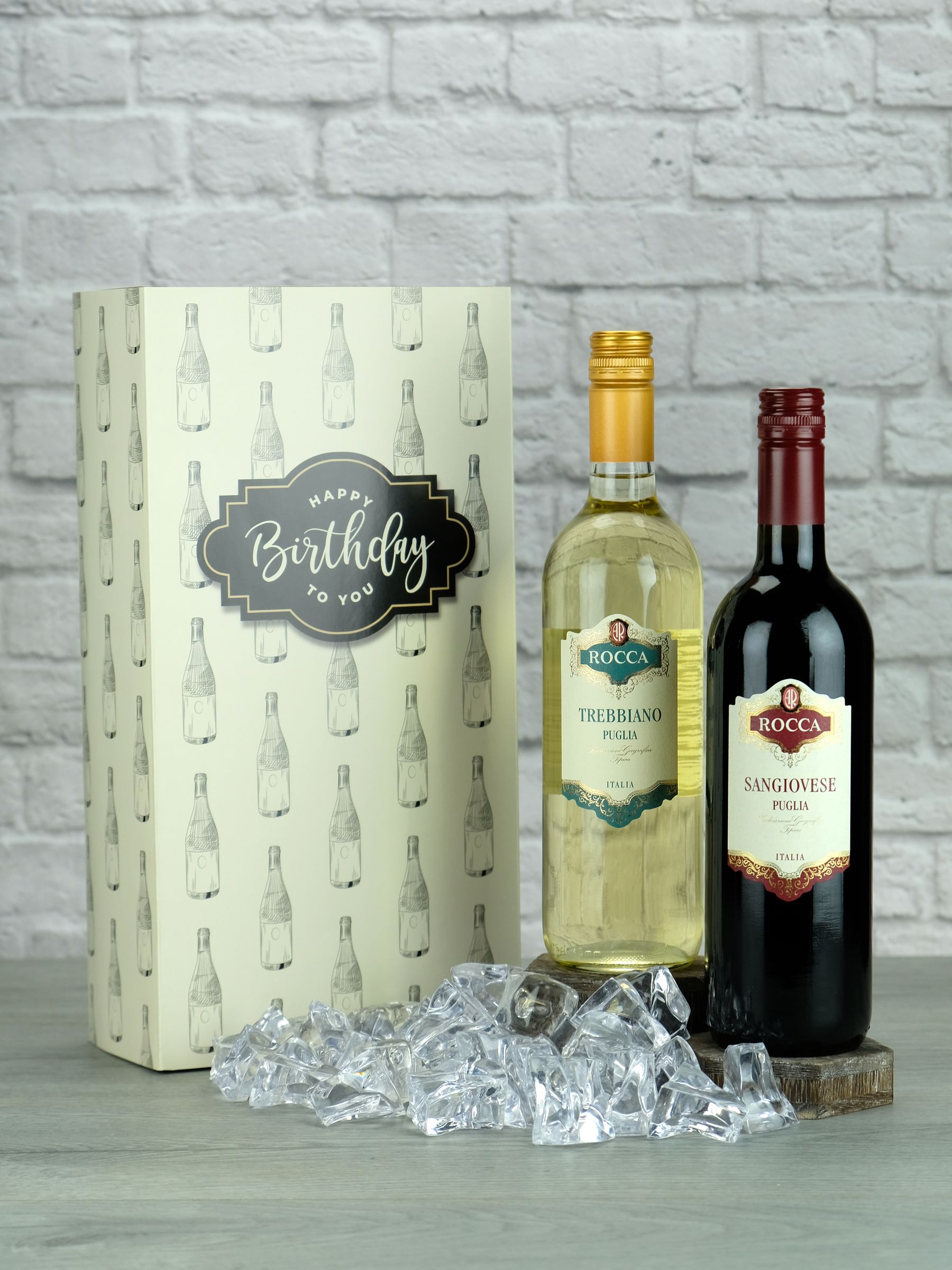 There is no better way to say Happy Birthday than the gift of wine! These two divine Italian wines will be sure to make quite the impression, presented in a beige bottle design, sleeve wrapped gift box. (Rocca Estate Trebbiano Puglia, Rocca Estate Sangiovese Puglia. If any products are unavailable... Read More
