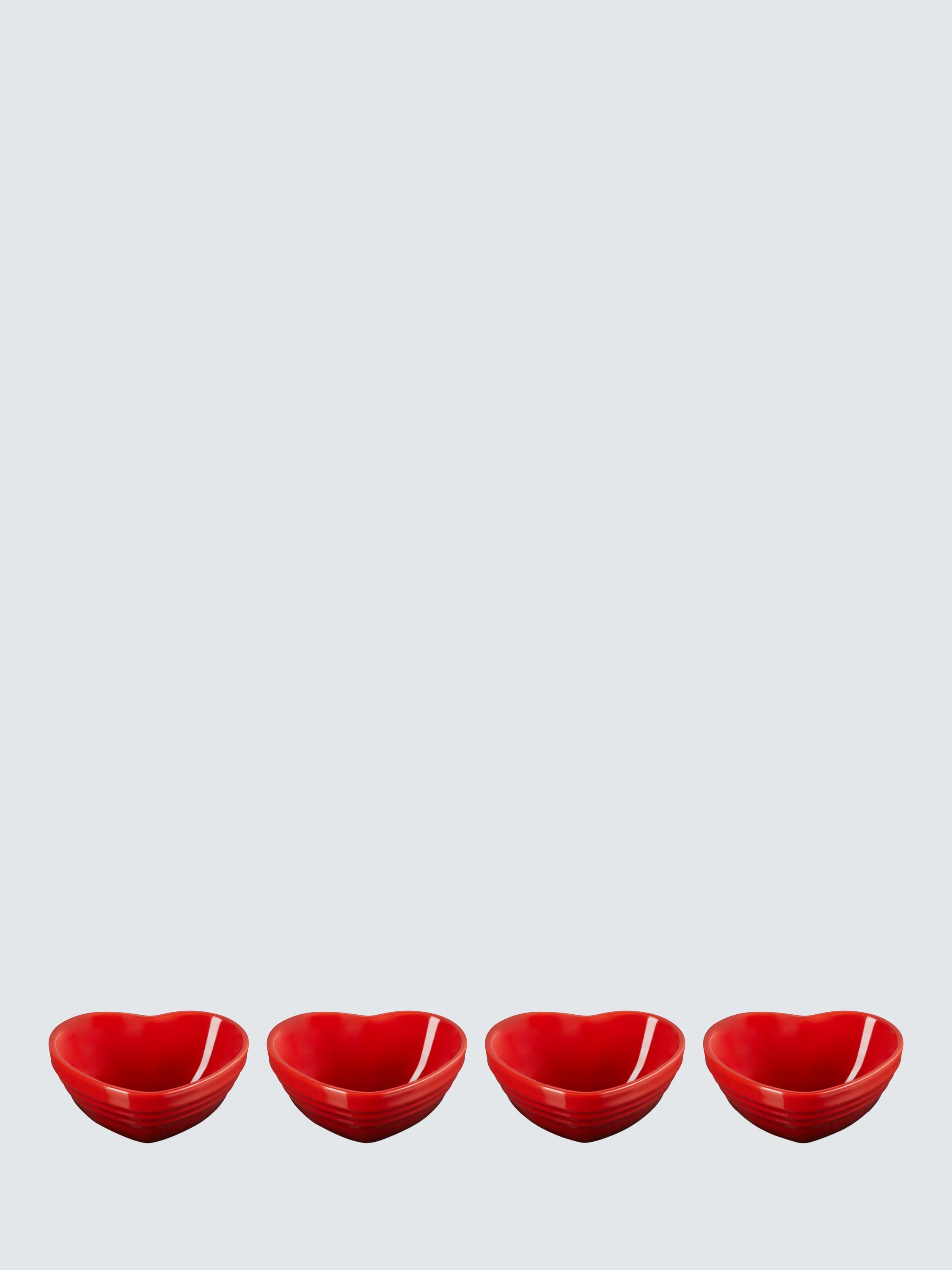 Four Le Creuset mini heart-shaped bowls, with a capacity of 80ml each. Ideal for creating delicious individual starters and desserts or simply for serving dips and condiments. An ideal gift for Valentine's Day, Mother's Day, birthdays, weddings or anniversaries. Presented in a premium colour card sleeve packaging.