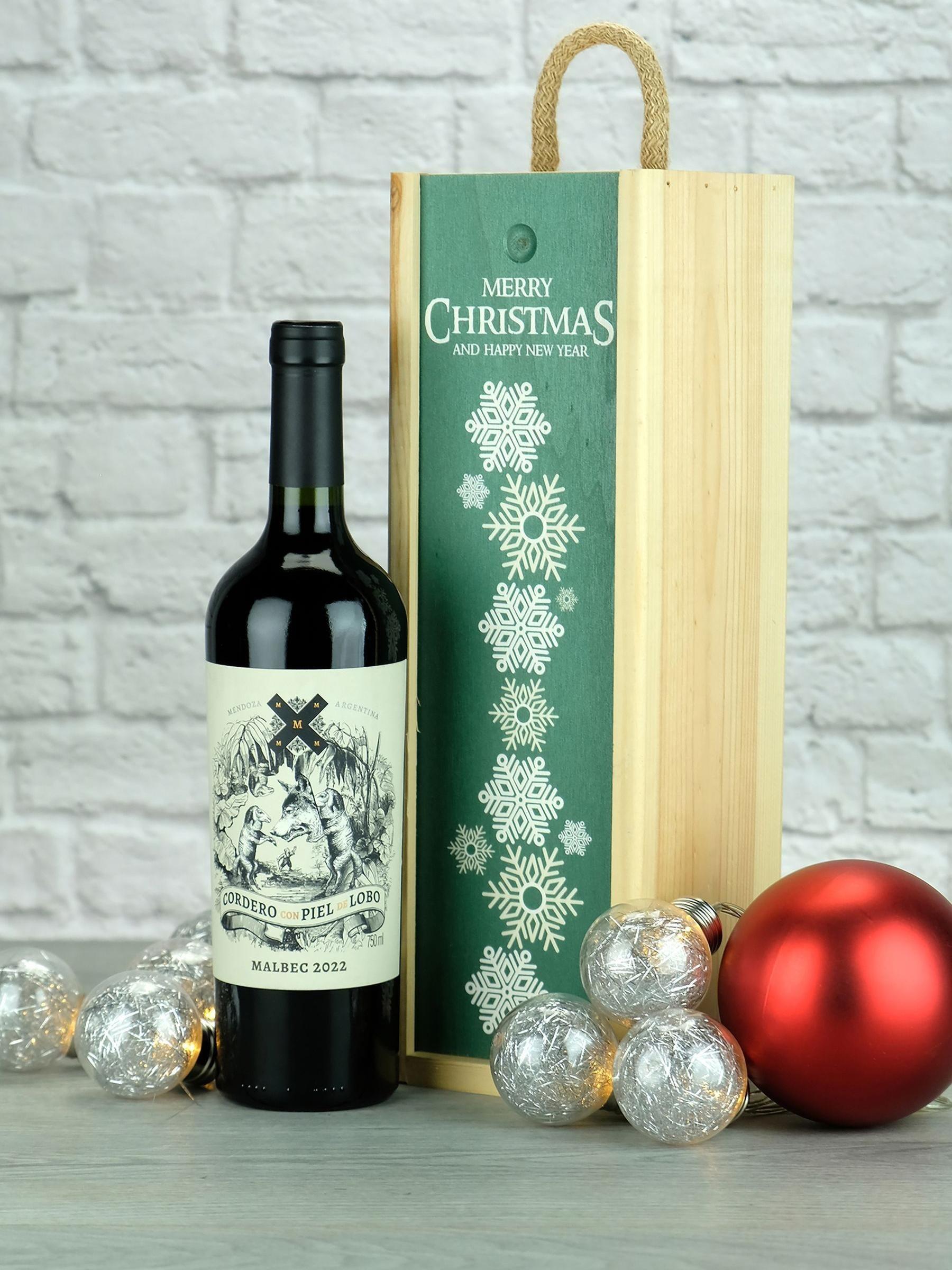 LeBonVin Argentinian Malbec In Christmas Wooden Gift Box
