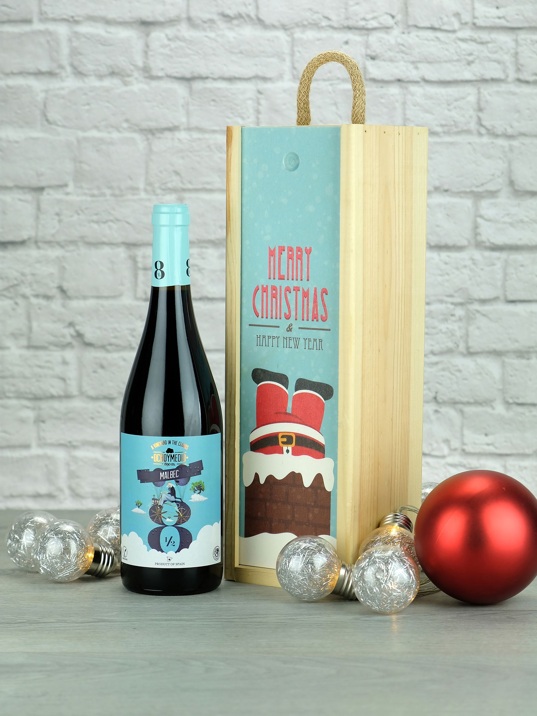 Wish someone a Merry Christmas with a delicious bottle of Malbec. The Ocho Y Medio Malbec looks cherry red in colour. The taste is smooth and elegant with gentle tannins, lively acidity, and a fruity ending. Presented in a Christmas themed wooden gift box. 1x 750ml Bottle.