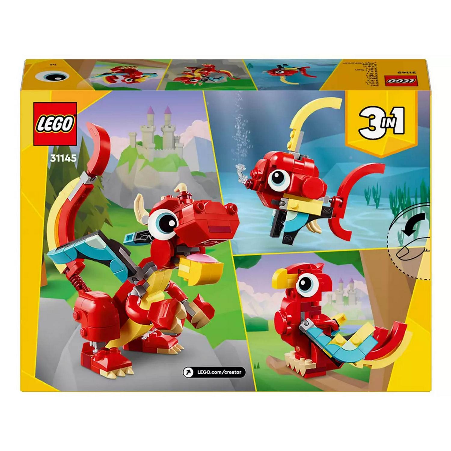 Read MoreKids can enjoy adventures in a magical land with this LEGO Creator 3in1 Red Dragon animal toy, then rebuild it into a phoenix model or fish toy.