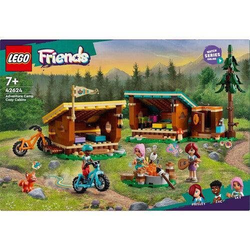 Read MoreThe LEGO Friends Adventure Camp Cosy Cabins (42624) building toy for 7+-year-old girls and boys comes with 3 LEGO Friends mini-dolls, a fox and lots of camping toy accessories so girls and boys can enjoy fun adventures. This LEGO toy building set for kids makes imaginative pretend play so much fun. Young builders tell the story of Paisley, Zac and Sky as the friends enjoy a cosy camping trip. The set includes 2 buildable shelters with roofs that lift for easy access. The friends put the sleeping bags inside, ready for nightfall. Then Zac and Sky ride the 2 mountain bikes while Paisley writes songs on the lute. In the evening, the friends relax by the campfire, where they toast marshmallows and make the traditional campfire treat – s’mores. Discover more gifts for 7-plus-year-old girls and boys with LEGO Friends sets (sold separately), where there are lots of opportunities for kids to act out real-life adventures. This set comes with the LEGO Builder app, where kids can zoom in and rotate models in 3D, save sets and track progress.