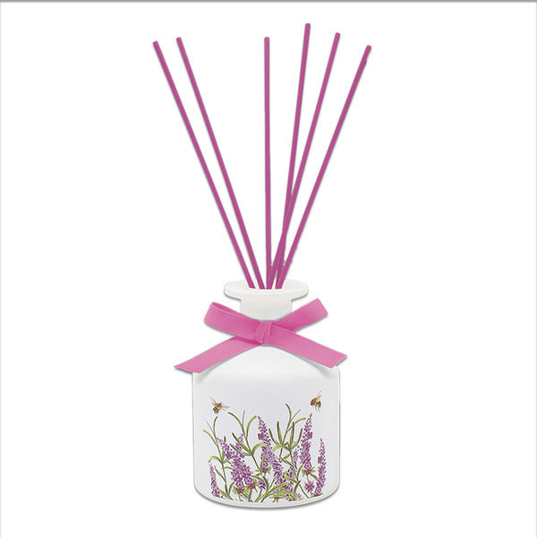 transform your space with the lavender beetanical diffuser featuring a handdrawn lavender and bee design it infuses your room with soothing lavender and woodland scents topped with a pink bow