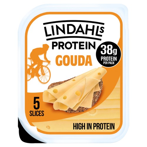 New Lindahls Gouda Cheese slices are your perfect match! With 38g protein per pack, new Lindahls Protein Gouda cheese slices are mild and creamy, ideal as a sandwich filling and on crackers for a protein boost.