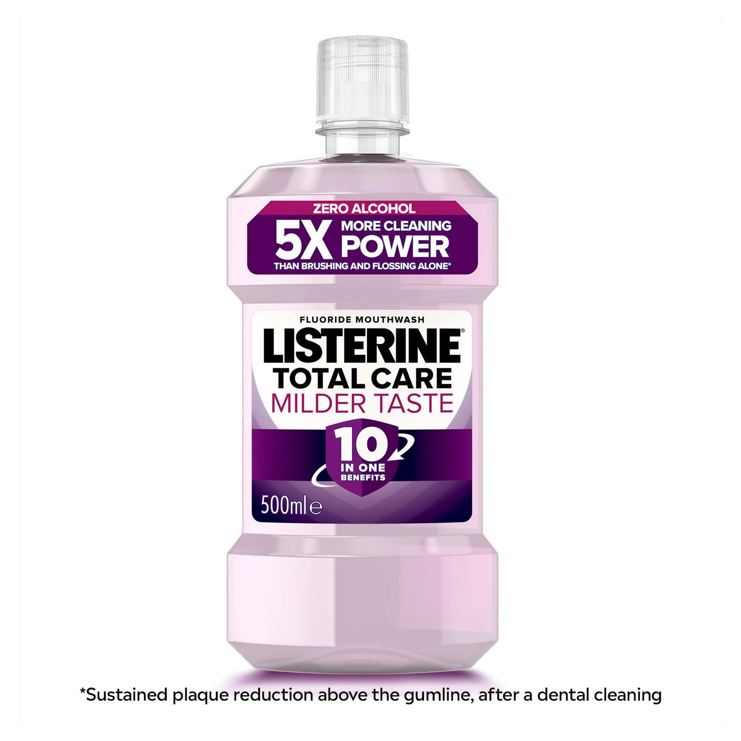 Incorporate LISTERINE Total Care Milder Taste into your daily oral hygiene twice per day. This zero alcohol mouthwash is clinically proven to deliver ten distinct benefits for comprehensive mouth health.