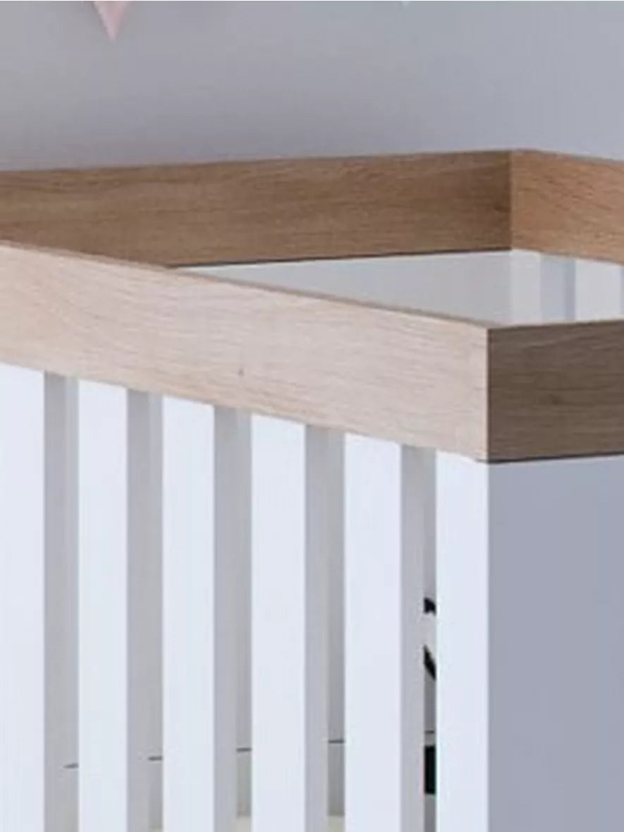 The Burlington range from Little Acorns features stylish and modern Scandinavian-inspired designs with attractive oak accents. This cotbed is designed for your child (and you) to enjoy a good night's rest. A substantial construction, it fits in any modern or traditional nursery, with its two-tone solid ends and chunky wide-slatted sides.