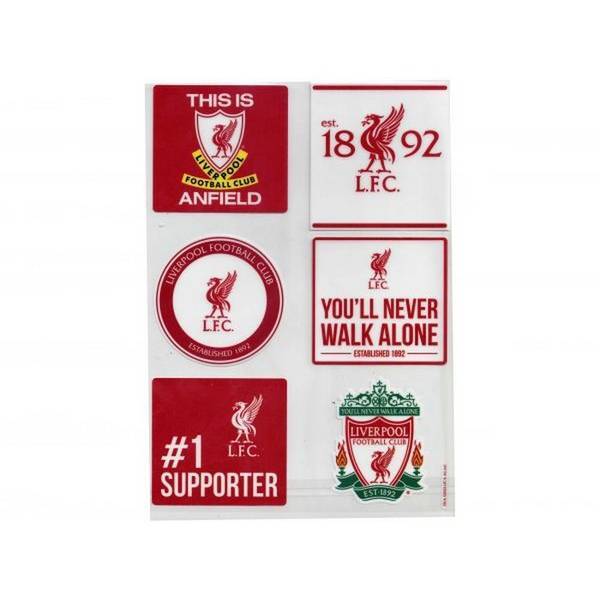 Show your support with this set of officially licensed Liverpool FC merchandise. These durable vinyl stickers feature the iconic crest and team text. This pack provides six individual decals perfect for personalising laptops, notebooks, or other smooth surfaces.