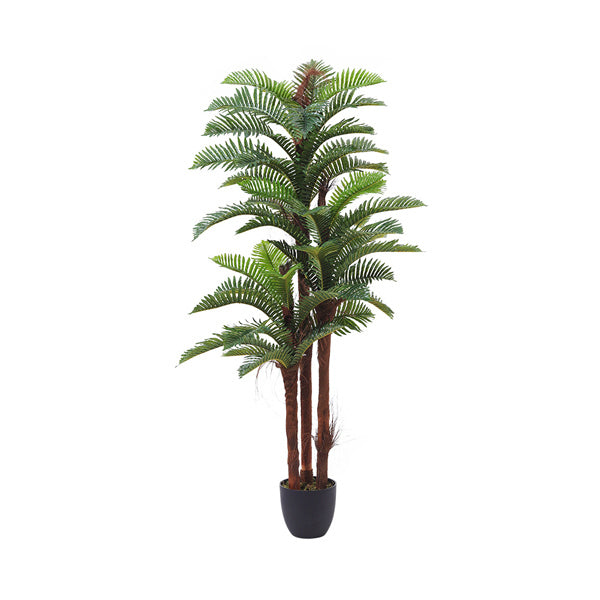 thick brown trunks and split leaves mimic a real fern tree no need for sunlight or watering perfect for busy lifestyles durable materials keep its vibrant green appearance without fading specifications overall height 200cm pot dimensions 22cm dia x 20cm placement floor plant species fern plant colour green plant material peva planter colour black pot material plastic package content 1 x artificial fern tree 1 x plastic pot