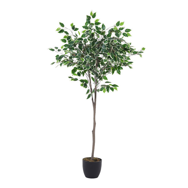 perfect for busy individuals or those with a green thumb that needs a break requires minimal care with no need for frequent watering or fertilizing made from highquality durable materials it is a sustainable choice specifications overall height 150cm pot dimensions 19cm dia x 155cm placement floor plant species ficus tree plant colour green plant material fabric planter colour black pot material plastic package content 1 x artificial ficus tree 1 x plastic pot