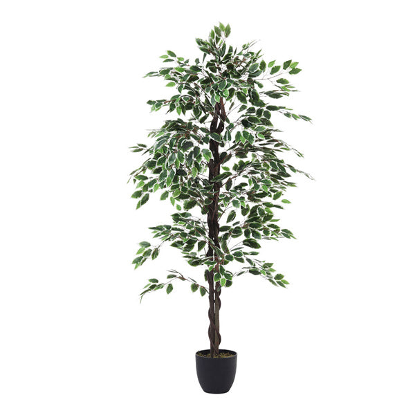 perfect for busy individuals or those with a green thumb that needs a break requires minimal care with no need for frequent watering or fertilizing made from highquality durable materials it is a sustainable choice specifications overall height 180cm pot dimensions 215cm dia x 185cm placement floor plant species ficus tree plant colour green plant material fabric planter colour black pot material plastic package content 1 x artificial ficus tree 1 x plastic pot