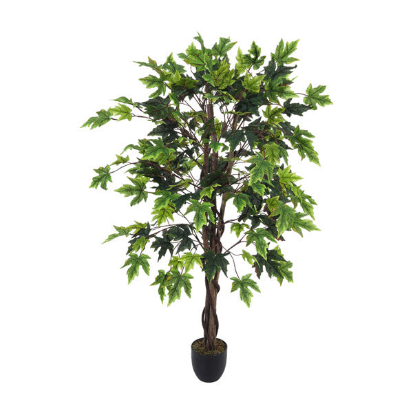 perfect for busy individuals or those with a green thumb that needs a break requires minimal care with no need for frequent watering or fertilizing made from highquality durable materials it is a sustainable choice specifications overall height 140cm pot dimensions 155cm dia x 15cm placement floor plant species maple tree plant colour green plant material fabric planter colour black pot material plastic package content 1 x artificial maple tree 1 x plastic pot
