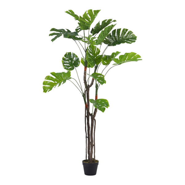 tropical monstera deliciosa tree brings life and ambiance perfectly sized for any space living room bedroom or office ideal for both discerning home owners and plant enthusiasts specification overall height 170cm pot dimensions 18cm dia x 14cm h product type artificial plant plant species monstera deliciosa placement floor pot material plastic plants material plastic plants colour green base included yes base colour black base material plastic package content 1 x artificial monstera deliciosa tree with pot