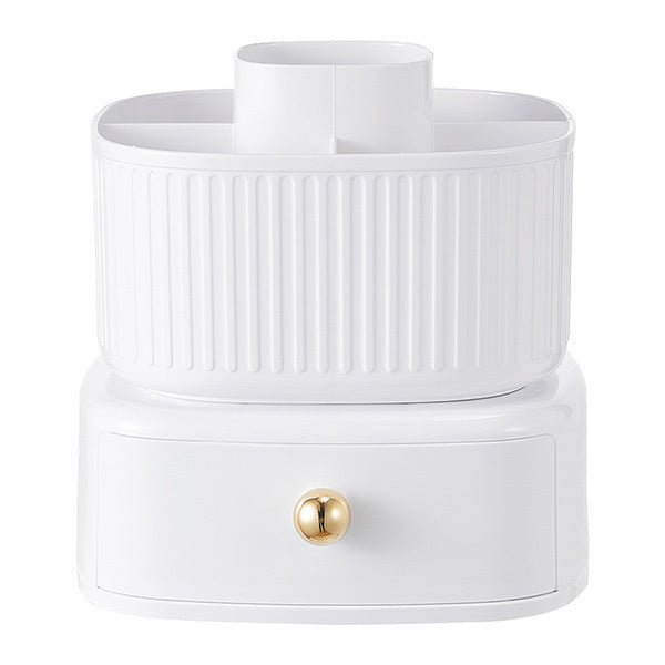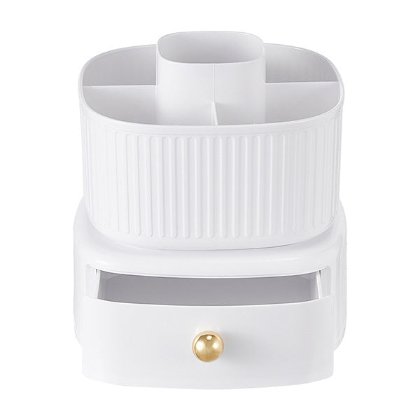 This Livingandhome makeup storage solution offers convenient access via its innovative swivel design. The unit incorporates a five-compartment holder resting atop a shallow drawer, allowing the entire upper section to rotate smoothly for retrieval.