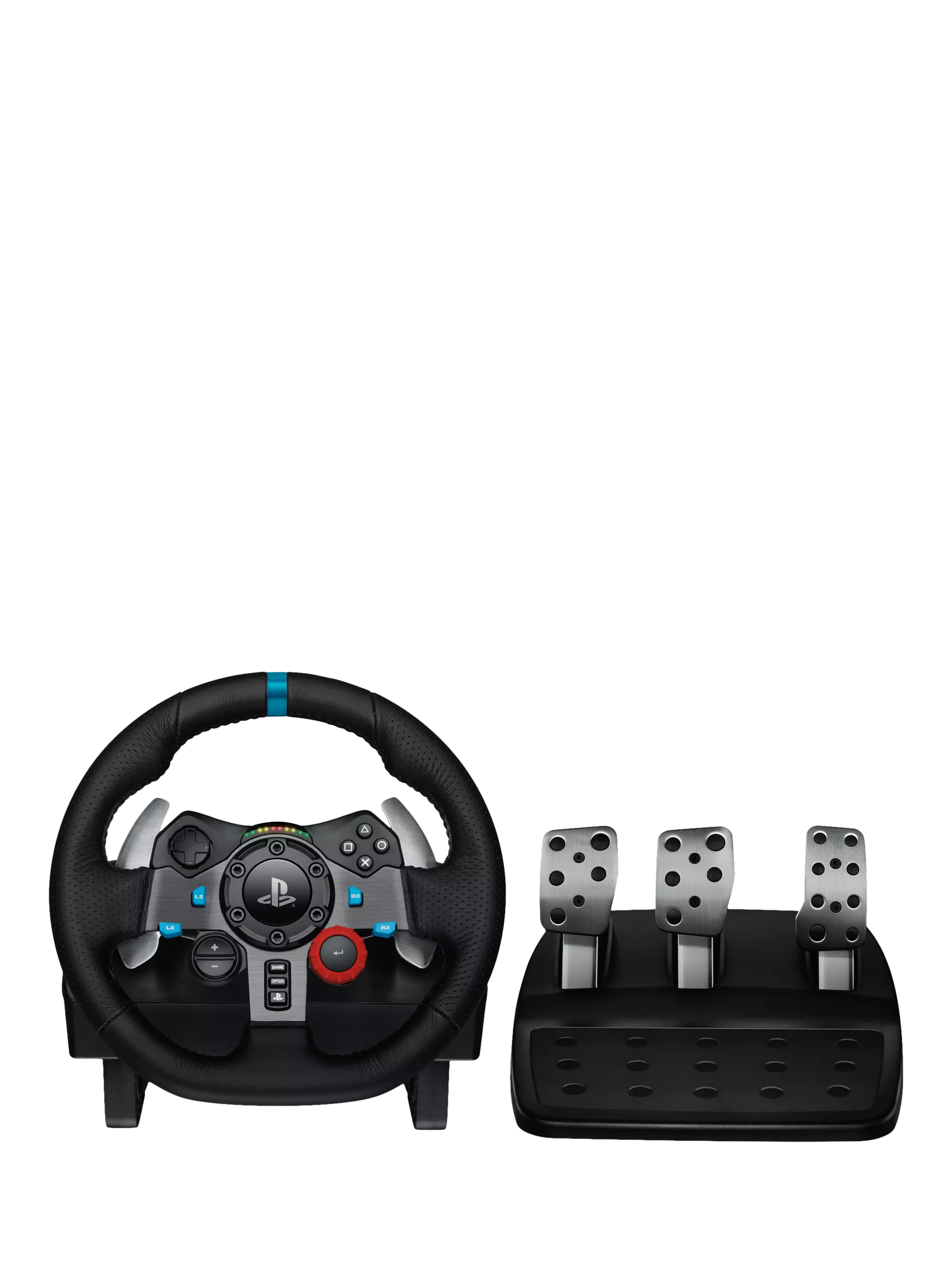 Made from hand-stitched leather, dual-motor force feedback in the wheel brings every tire slip and terrain change to life. Stainless steel paddle shifters and RPM indicator LEDs help you make crisp, fluid gear transitions without taking your eyes off the track, and the 900° wheel rotation means super precise corners are a cinch.