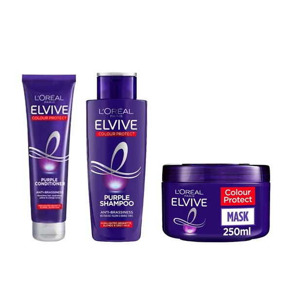 loreal paris elvive colour protect purple bundle if you have coloured hair try our colour protect products designed to help protect colour radiance elvive purple products help fight those brassy tones on blonde and highlighted brunette hair