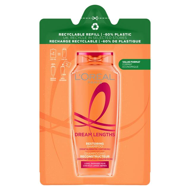 L'Oréal Paris Elvive Dream Lengths Restoring Shampoo is now available in an easy-to-use format. This formulation is specifically designed to restore long, damaged hair using a powerful blend of key revitalising ingredients. Choosing this option supports environmental goals by significantly reducing plastic waste compared to a standard bottle purchase. This is the convenient, value-focused way to maintain your long hair care routine.