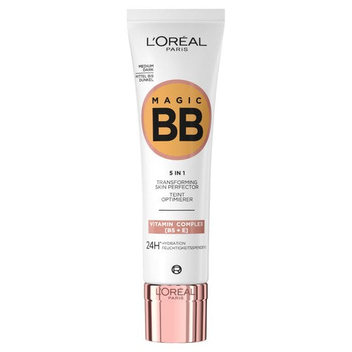 Read MorePerfect your skin with L'Oreal Paris Magic BB cream, now formulated with Vitamin B5 and Vitamin E. This lightweight formula transforms to adapt to skin tone for a flawless finish. Providing up to 24 hours of hydration, Magic BB cream provides a natural make-up result all day long, whilst minimising the appearance of imperfections, wrinkles, and pores. Skin is instantly glowing and looks smoother. Tested under dermatological control, the cream is suitable for sensitive skin.