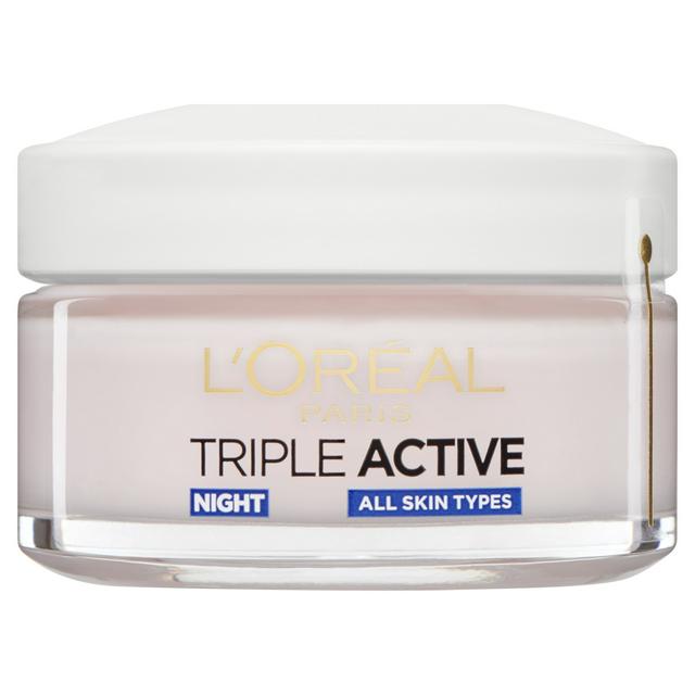 The L'Oréal Paris Triple Active Night Cream is developed to counteract the visible impact of daily skin stressors such as pollution and UV exposure. This formula works while you sleep to deliver necessary comfort and lasting hydration for your complexion.