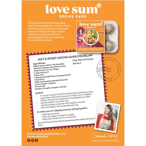 Enjoy with your favourite dipping sauce or serve with Hot & Sweet Gochujang Coleslaw - for our recipe see inside sleeve.