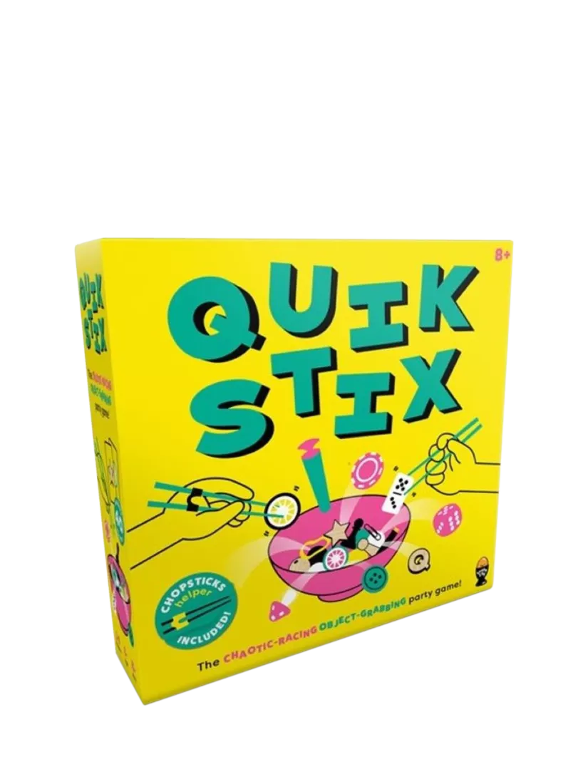 Get ready for some high-energy action! Grab your Quik Stix chopsticks, flip the object card and dive into a 1vs1 battle as you rummage through the bowl of items to claim your prize. But you've only got 30 seconds so act Quik or lose out!
