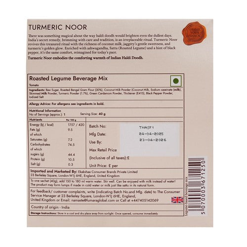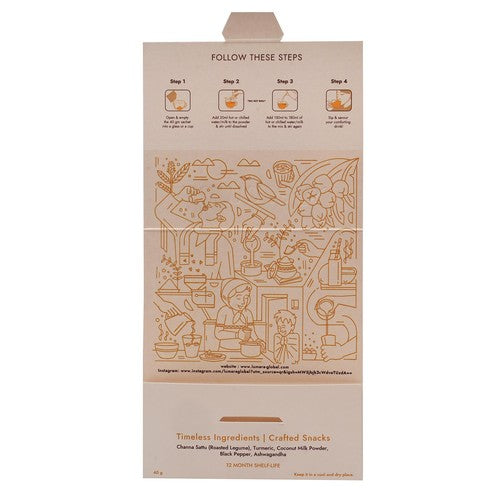 Lumara Turmeric Noor revives the treasured tradition of haldi doodh, offering the comforting warmth of India’s secret remedy. This modern formulation blends rich coconut milk and the gentle sweetness of jaggery with turmeric's golden goodness. It is designed to fit seamlessly into a fast-paced contemporary lifestyle while retaining traditional comfort.