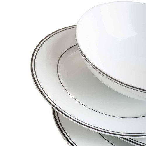 This versatile porcelain dinner set integrates functionality with timeless aesthetics.