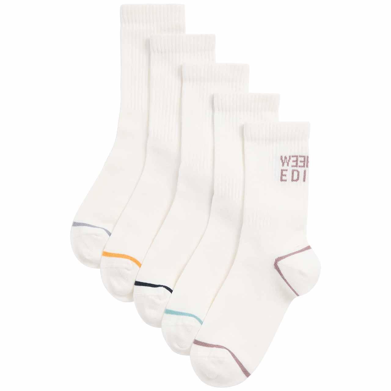• Each pair includes a 'Weekend Edition' slogan visible on the ribbed cuffs.