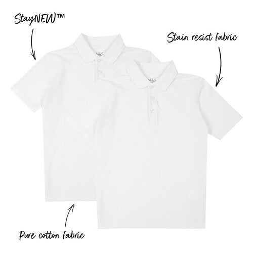 M&S Boys, Stain Resist School Polo Shirts, 10-11 Years, White
