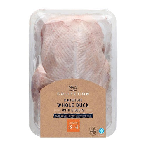 This M&S Collection whole duck is sourced from select British farms, offering quality guaranteed by the brand. This fresh poultry is ready to be prepared for a traditional family centrepiece meal. Designed to serve approximately three to four people, it simplifies your weekend dinner planning.