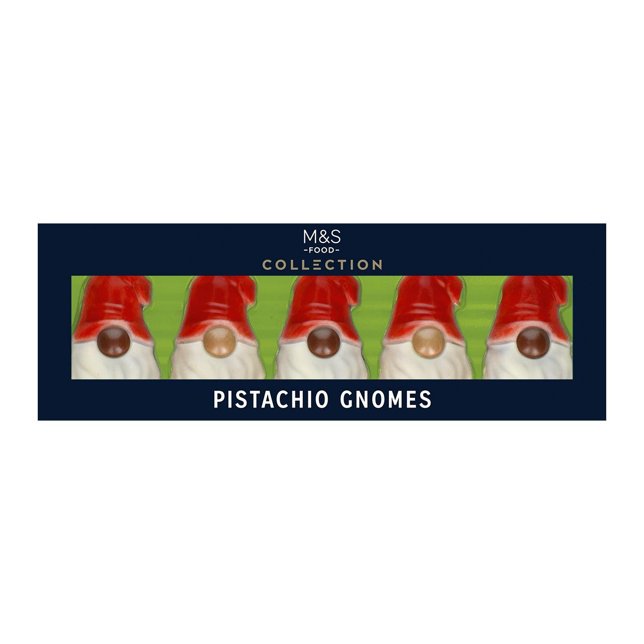 These delightful M&S Collection Pistachio Gnomes offer an intricate, high-quality seasonal confectionery option. Each gnome is meticulously hand decorated, combining rich milk and blond chocolate shells for varied flavour profiles. They represent the attention to detail characteristic of the M&S Collection range, ensuring a premium eating experience.