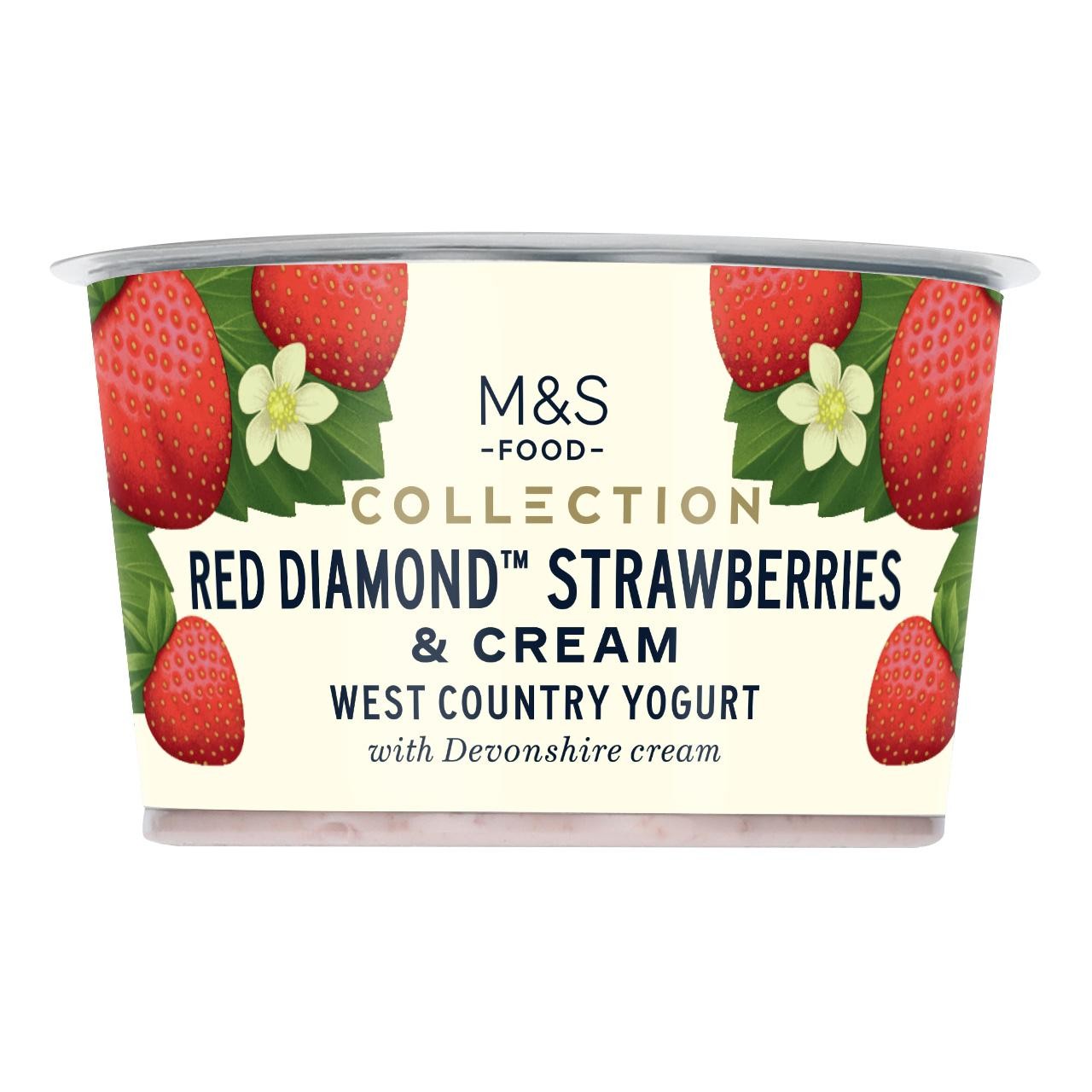 This M&S Collection item is a decadent yogurt featuring Red Diamond strawberries and rich Devonshire cream. It is prepared as an extra thick style and contains beneficial live cultures. This specific range highlights M&S’s focus on high quality and intricate preparation standards for consumers.