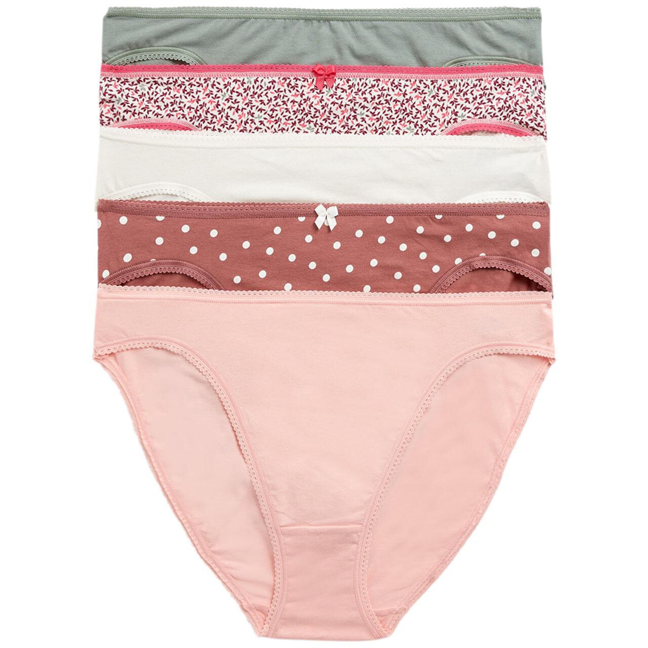 These M&S Collection five-pack knickers are crafted from a cotton-rich blend for breathable comfort all day long. The flattering high-leg style ensures total freedom of movement thanks to the inclusion of added stretch Lycra. This versatile multipack offers variety with different prints and plain options to refresh your essentials drawer.