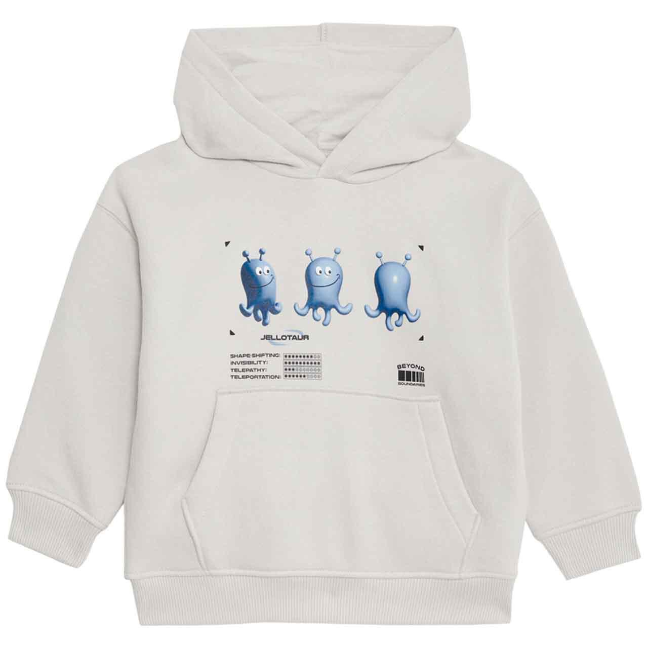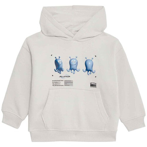 This light grey hoodie features lively Jellotaur™ prints on the front and back, appealing to young fans of the digital monsters. Made from a breathable, cotton-rich fabric, it offers comfort throughout the day. The regular fit ensures easy layering over base tops or under coats during cooler weather.