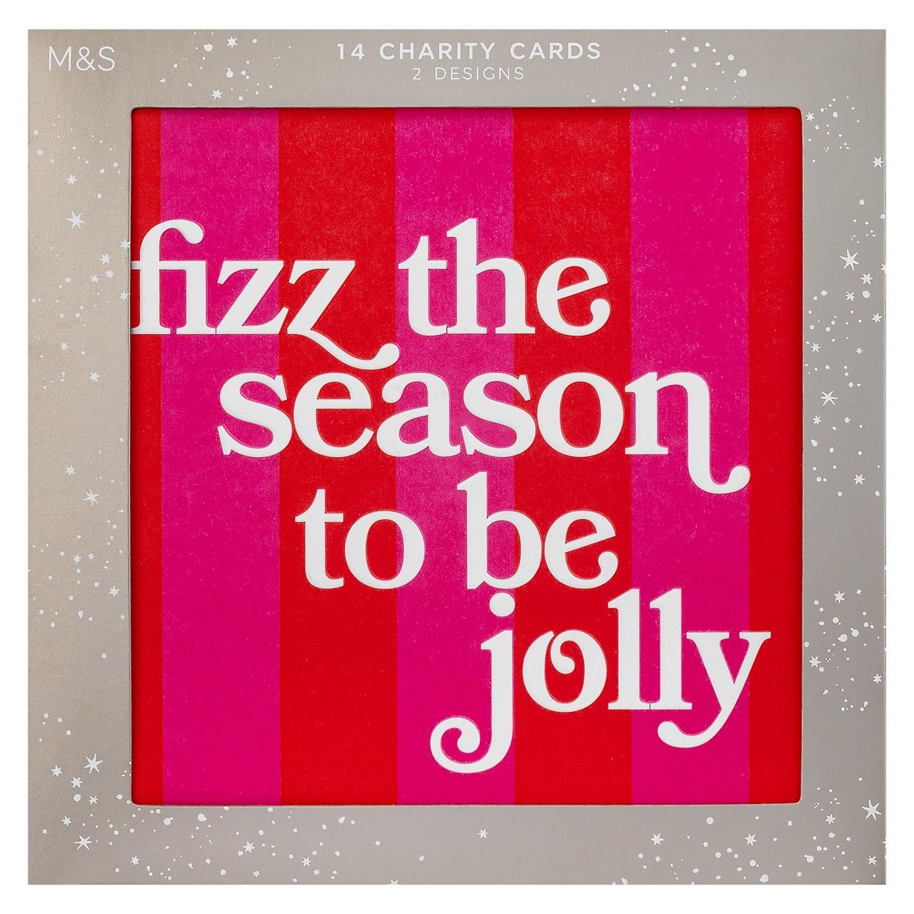 Send thoughtful greetings this festive season with this pack of 14 M&S Charity Christmas cards. These high-quality cards feature two contemporary designs, one with embossed text, perfect for sharing seasonal goodwill. Purchasing these cards contributes to charitable donations, supporting Young Minds and Jigsaw.