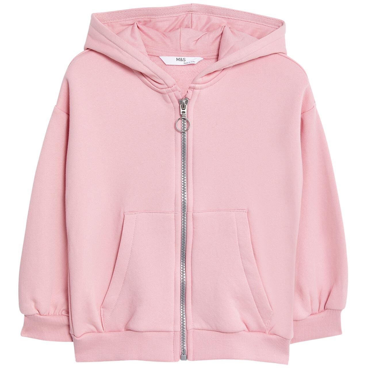M&S Girls Cotton Rich Plain Hoodie, 3-4 Years, Light Pink