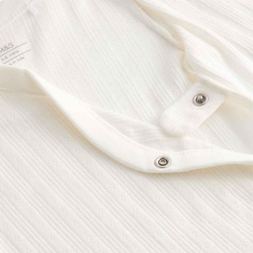 Stock up on essentials with this handy pack of three long-sleeved M&S baby bodysuits, ideal for everyday wear. They are crafted from pure cotton fabric, featuring a lovely, delicate pointelle knit texture. These practical garments are designed specifically for maximum comfort and convenience during changes for your baby.