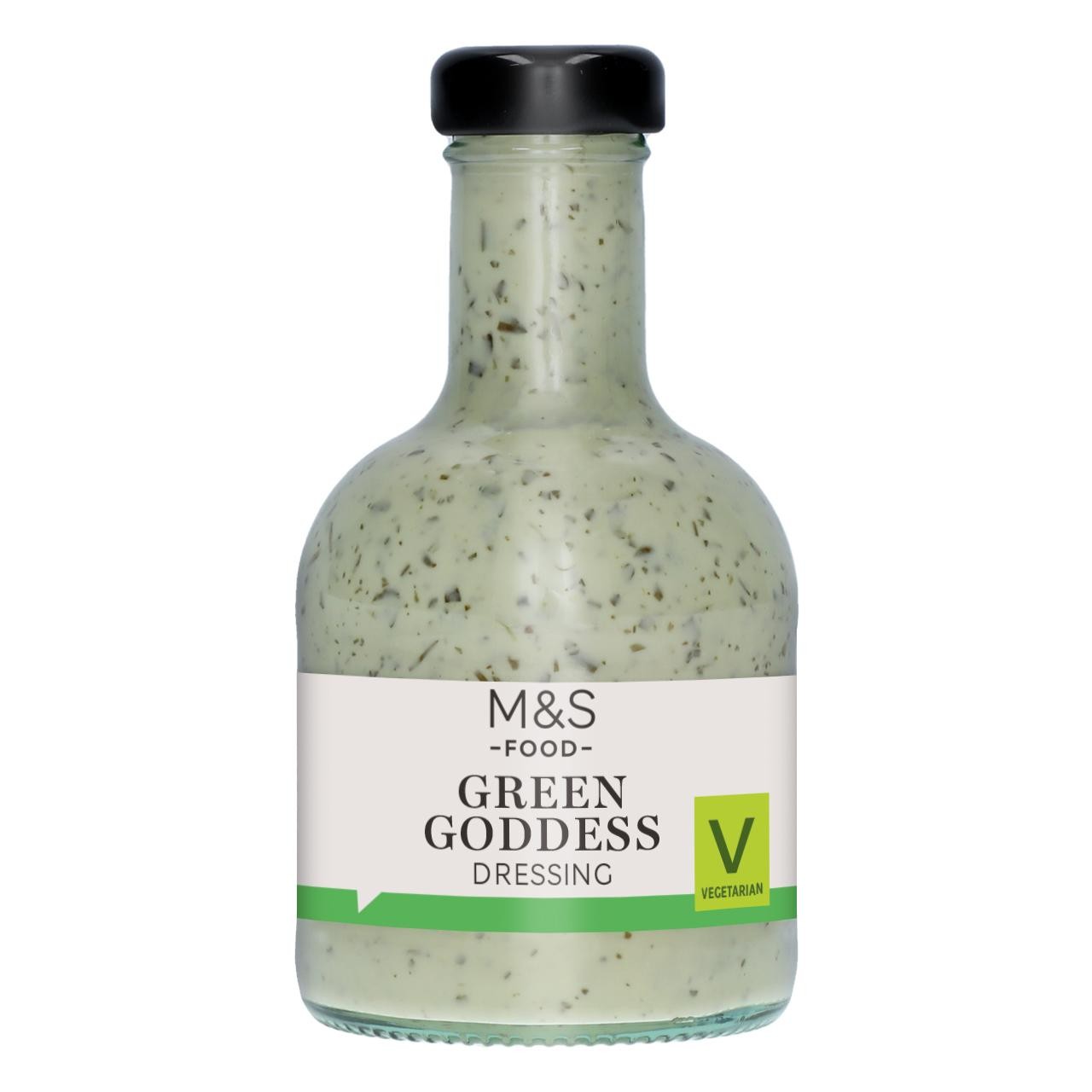 Discover the M&S Food Green Goddess Dressing, a light and creamy dressing expertly blended with fresh garden herbs for maximum flavour. This vegetarian option offers a delightful, verdant taste profile perfect for enhancing salads or cold dishes. It is thoughtfully packaged to maintain its fresh appearance and quality.
