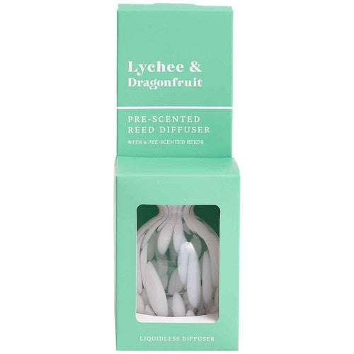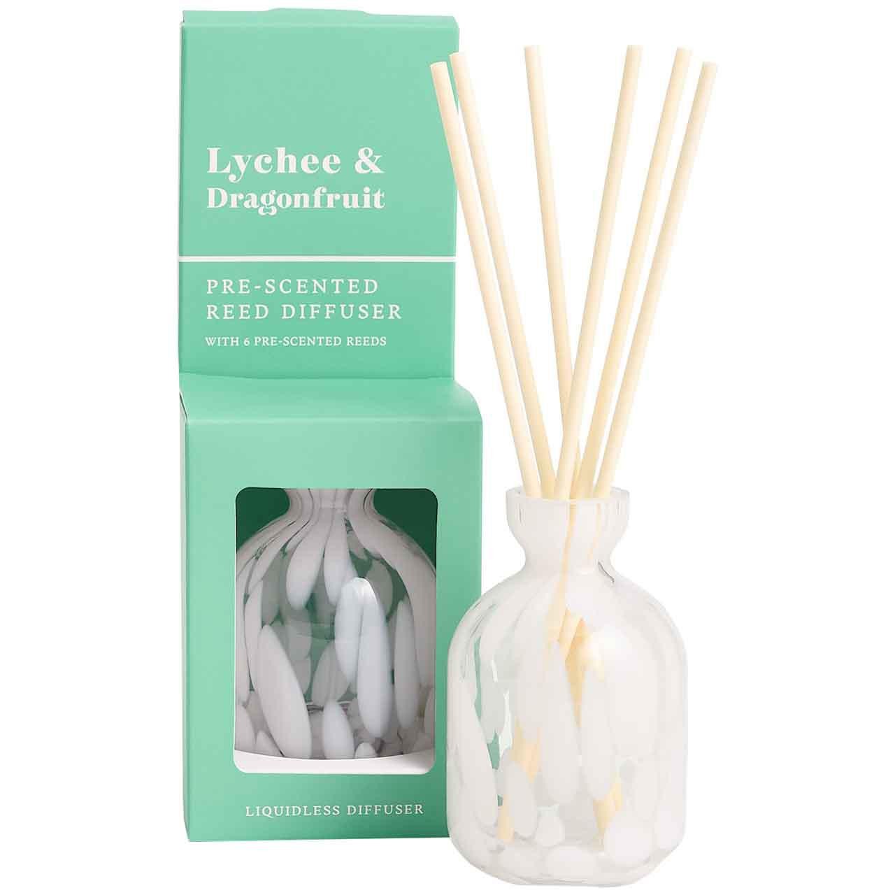 This liquidless reed diffuser offers a stylish way to fragrance your room using pretty pastel-coloured confetti glass. It releases the appealing notes of Lychee & Dragonfruit, creating a distinctly fruity and musky scent profile for your space. This innovative design removes the potential hazard associated with traditional liquid diffusers.