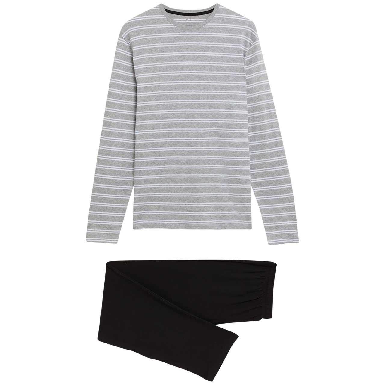Stay comfortable on cooler evenings with this regular fit pyjama set crafted from pure cotton. The ensemble includes a long-sleeved, striped top and plain bottoms, featuring functional side pockets and a mock fly detail. M&S prioritises using only responsibly sourced cotton for its wardrobe staples.
