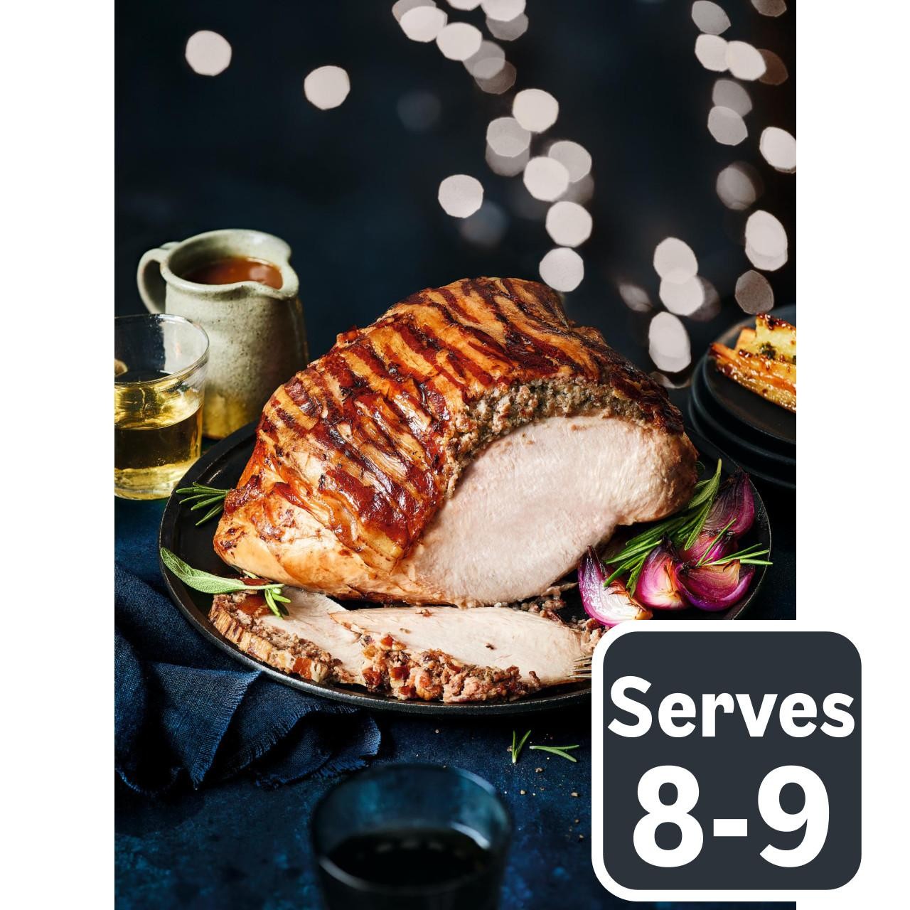 This M&S Oakham Turkey Crown comes oven-ready and ready for your seasonal centrepiece. It features an on-the-bone turkey crown sourced from British Oakham stock. The crown is generously filled with a traditional pork, sage, and onion stuffing mixture.