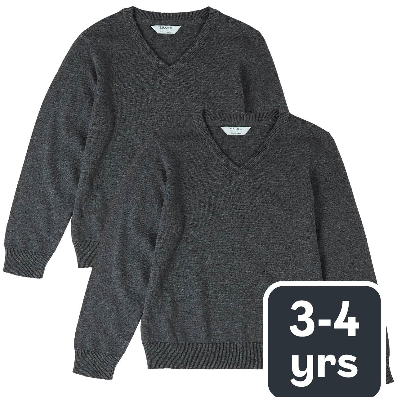 M&S Pure Cotton School Jumper, 3-4 Years, Grey