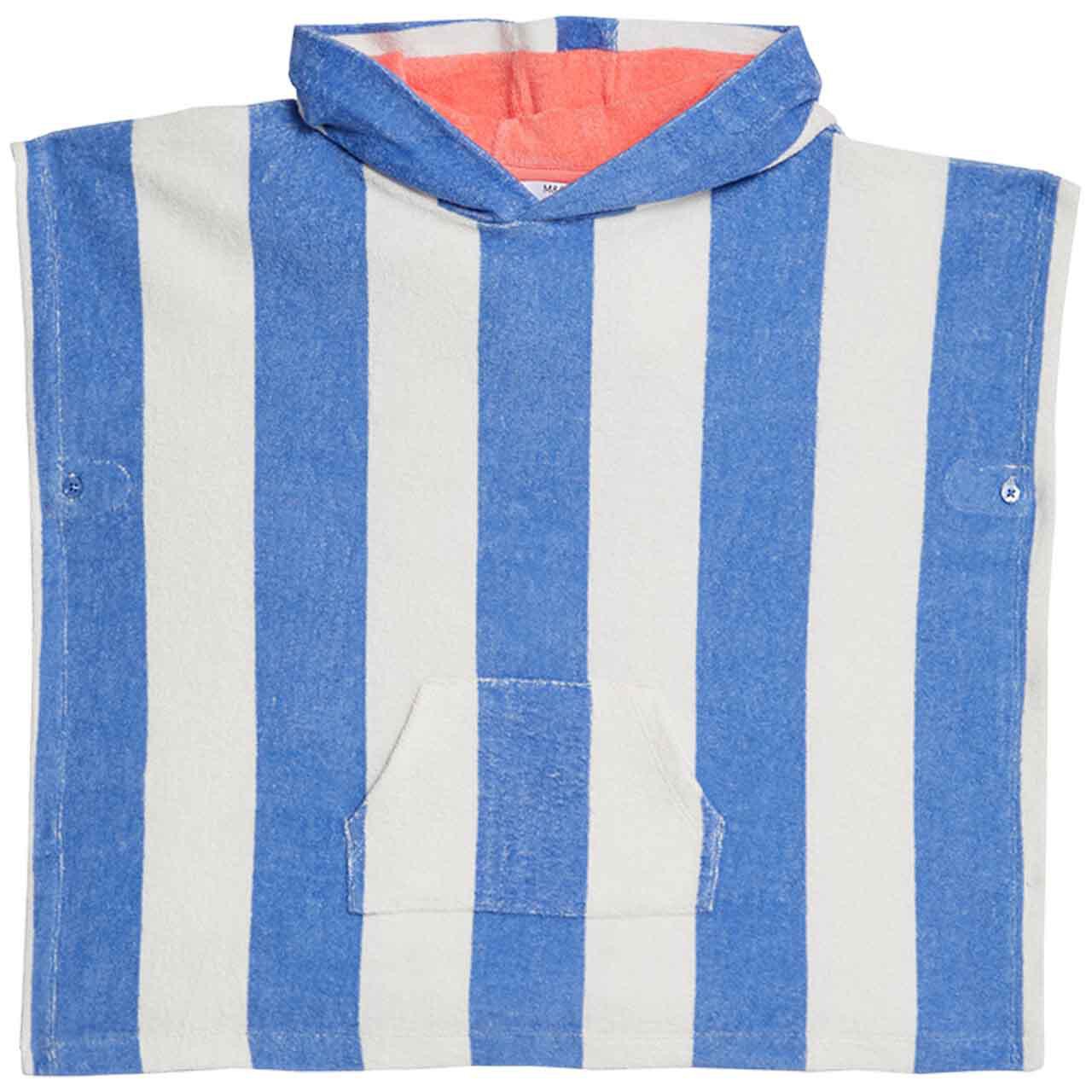 This pure cotton poncho is specifically designed to quickly dry children after water activities such as swimming or bathing. It offers a comfortable regular fit, making it suitable for relaxed wear by the pool or beach. The garment incorporates bold, beachy stripes and is made from soft, natural fibre.
