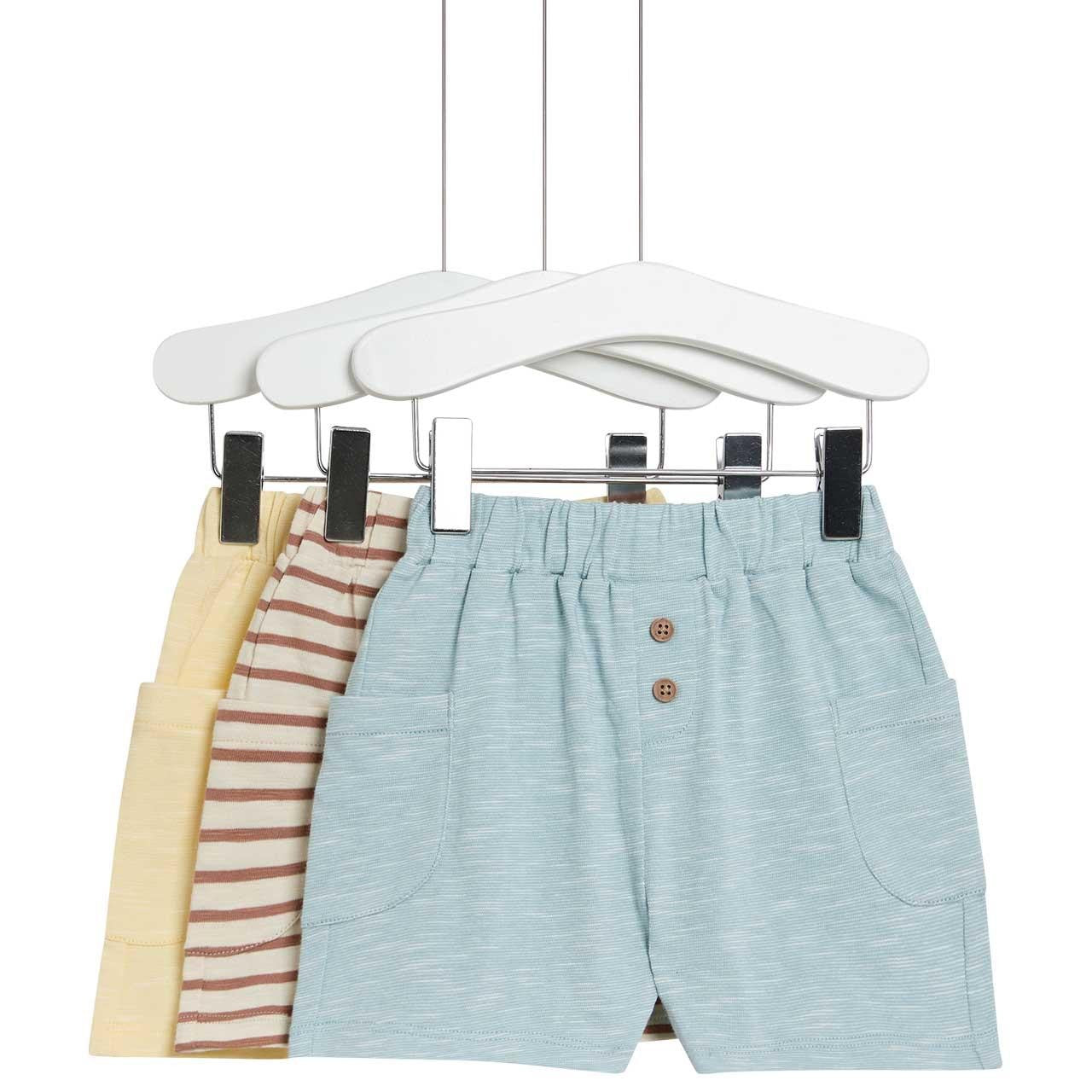 Prepare your little one for sunny days with this essential three-pack of pure cotton shorts from M&S. This convenient collection offers excellent value, providing one stylish striped pair and two solid-coloured designs. These shorts are specifically crafted from pure cotton fabric for gentle comfort against delicate skin.