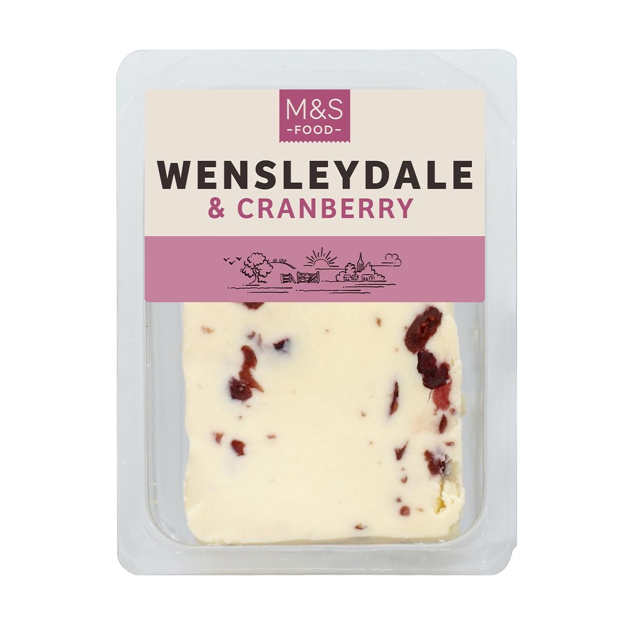 This M&S Wensleydale cheese offers a distinctly creamy texture combined with inclusions of sweet and fruity cranberries. It is crafted by the renowned Long Clawson Dairy, known for its quality cheese production. This combination creates a balanced flavour profile suitable for various occasions.