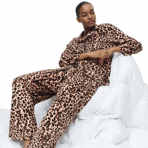 M&S Womens Leopard Print Pyjama Set, L, Brown