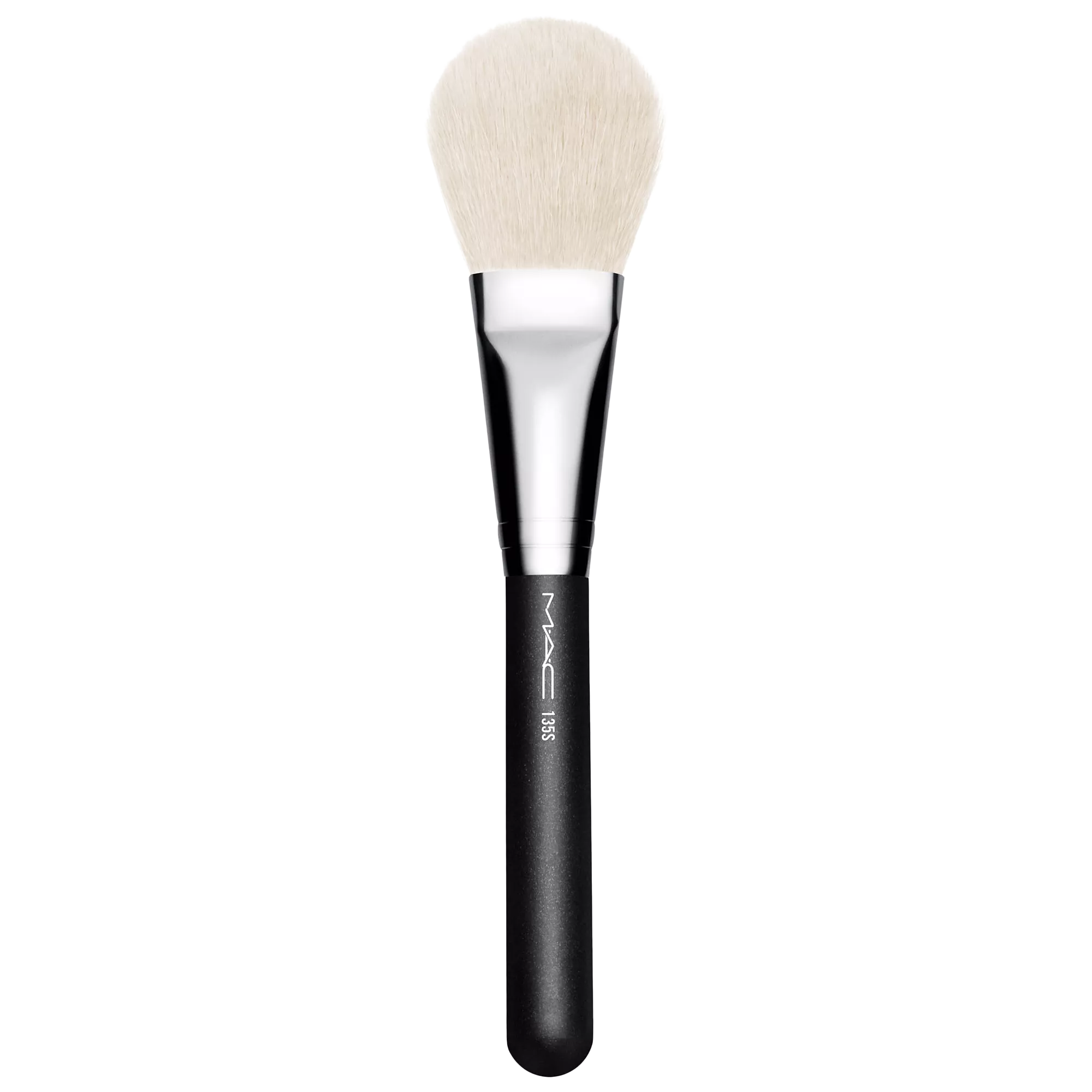 Achieve a flawless, sheer powder application with the MAC 135S Large Flat Powder Brush, perfect for creating a naturally radiant look.