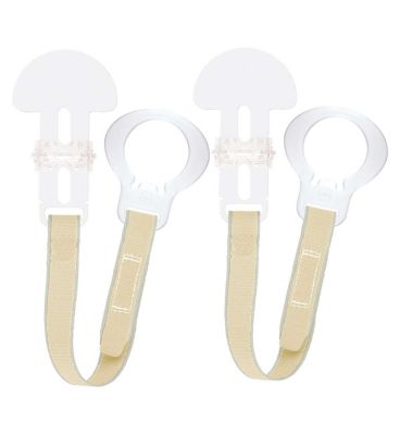 This MAM double pack offers a practical solution for keeping baby's essential items secure. Each unisex clip features a durable plastic attachment point and an adjustable fabric strap. The design ensures that pacifiers or teethers remain clean and within easy reach for your infant. These versatile accessories prevent items from being dropped onto the floor or misplaced during outings.
