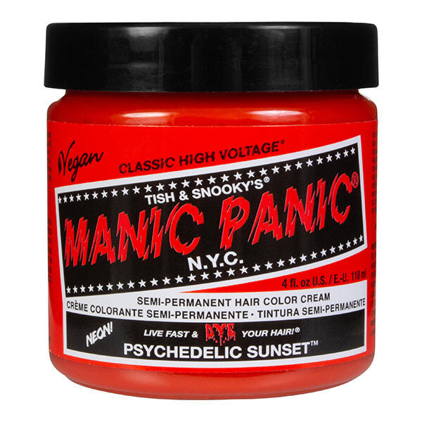Amp up the wow factor with the Manic Panic Classic High Voltage Psychedelic Sunset Hair Dye! This semi-permanent dye is vegan friendly & PPD free.