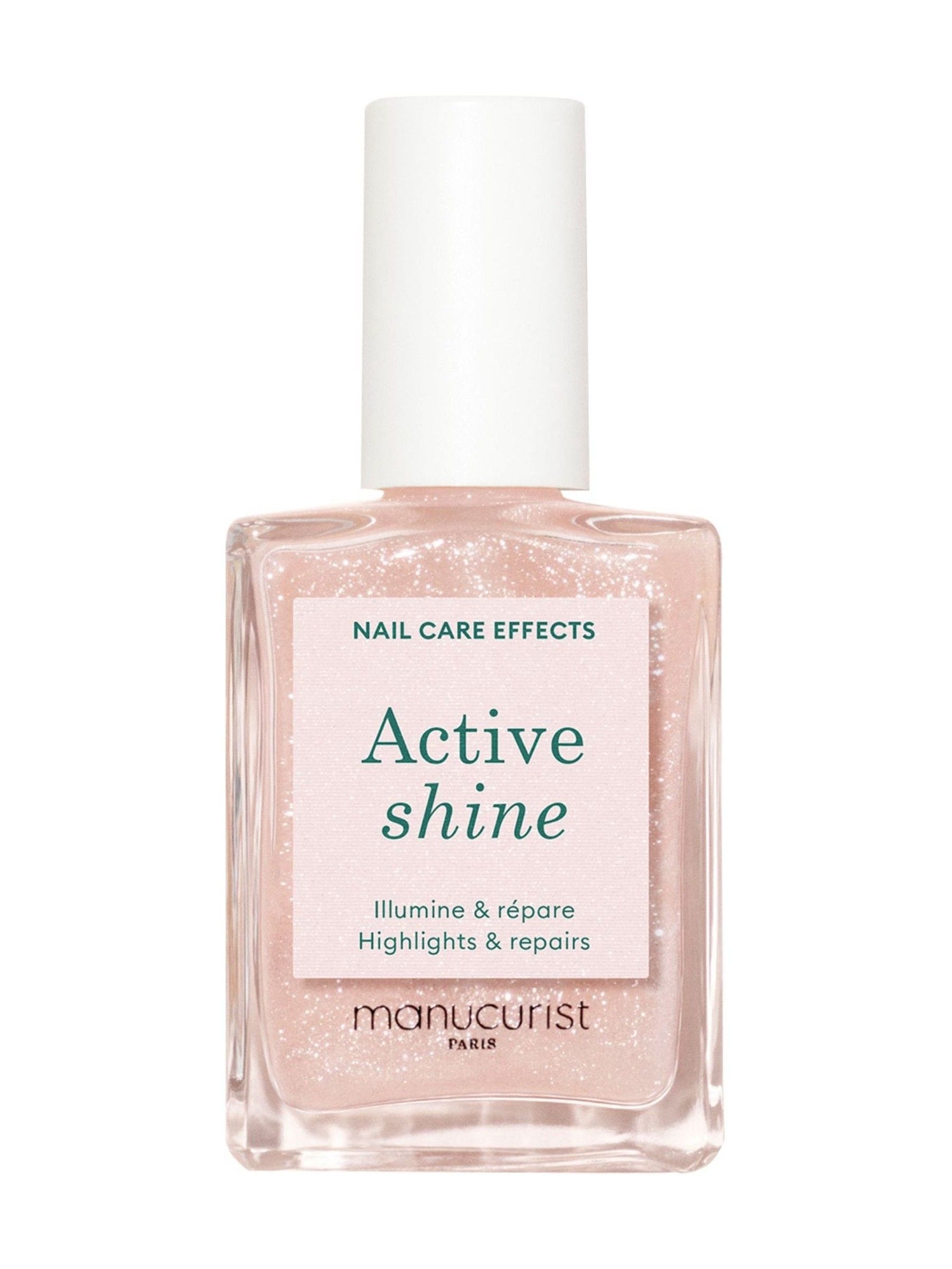 A cross between nail care and make-up, Active Shine illuminates even the most damaged nails. It's glittery formula, enriched with beet extract and Hexanal, soothes and strengthens nails.