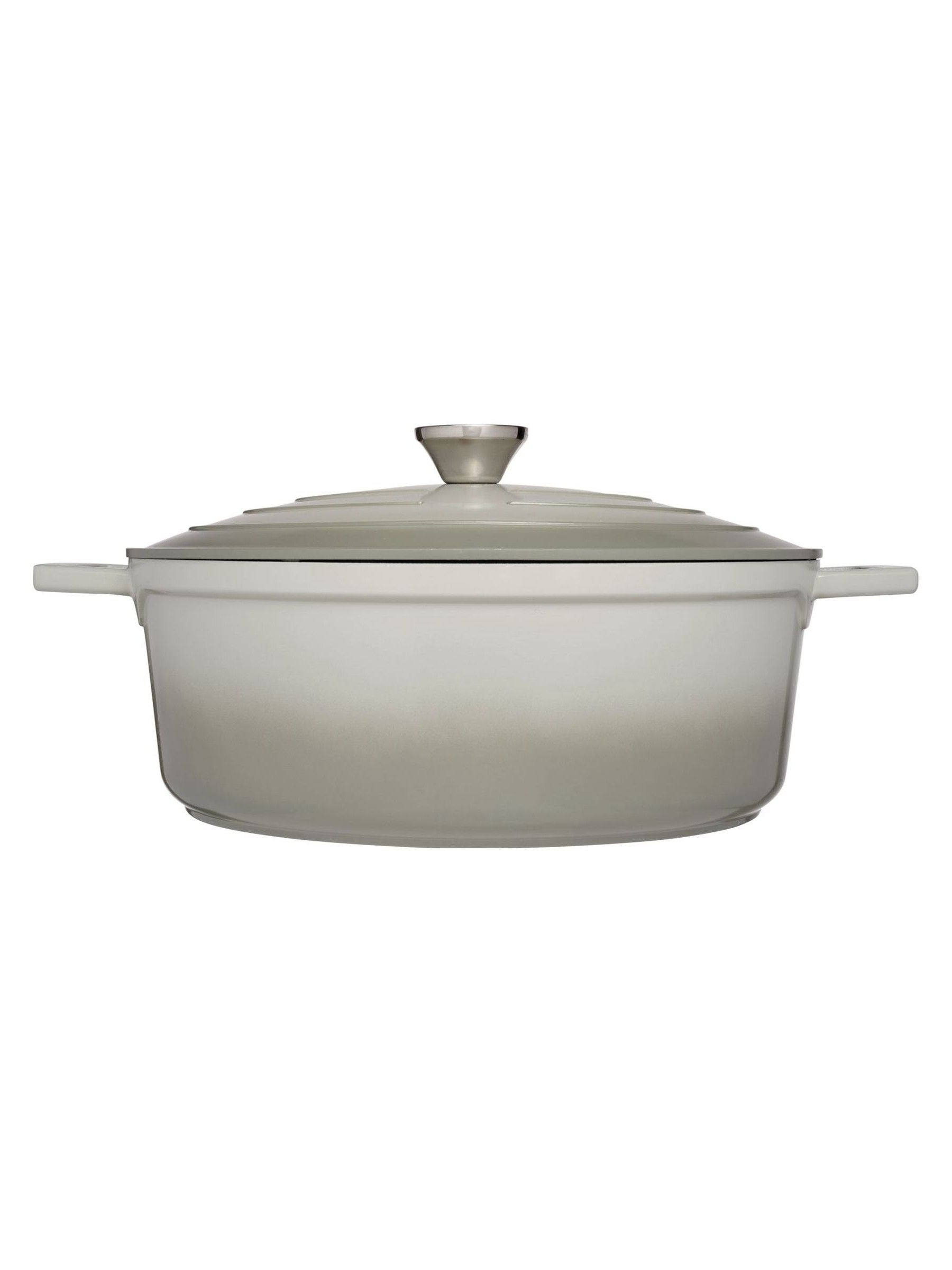 This sturdy Mary Berry At Home 32cm Cast Aluminium Oval Casserole Dish is perfect for making your favourite dishes for loved ones. Suitable for use on all hobs including induction and features a self basting lid for extra moisture. This classic ombre showstopper is the perfect gift for your favourite chef. Dishwasher safe and finished with the Mary Berry logo embossed on the stainless steel knob.